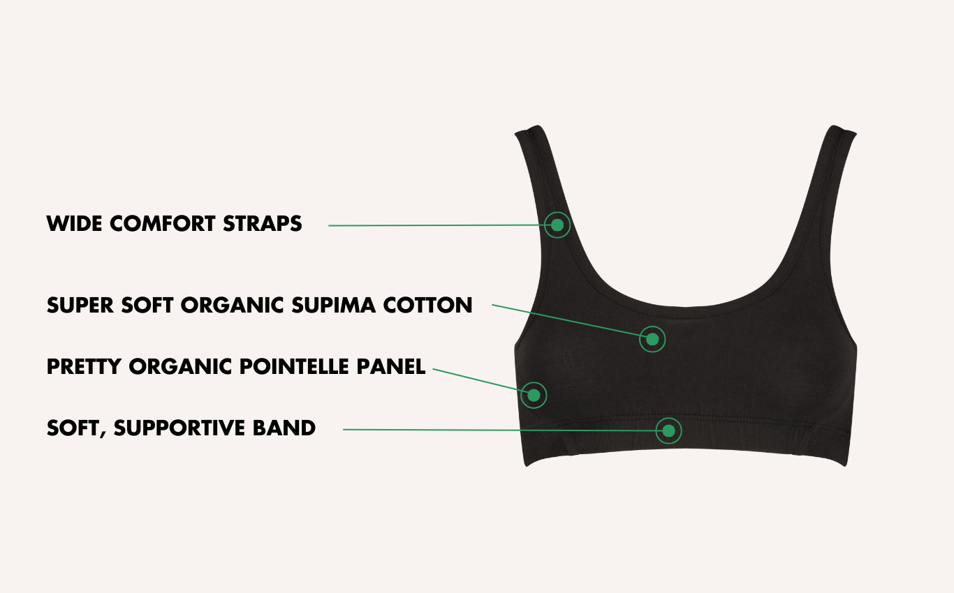 Soft support, maximum comfort. Wireless design you'll want to reach for every day. Our version of the perfect t-shirt bra. 100% organic. 0% synthetic.