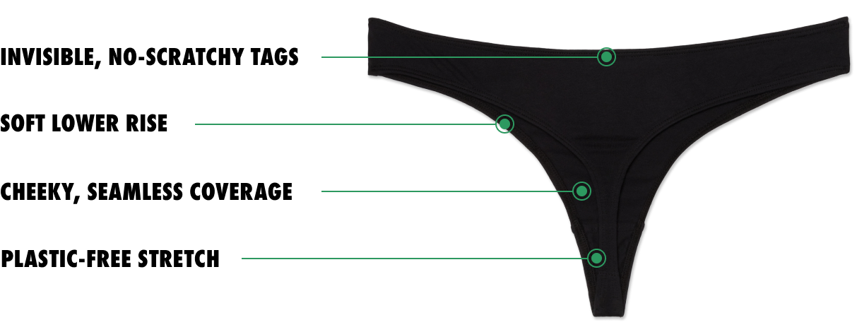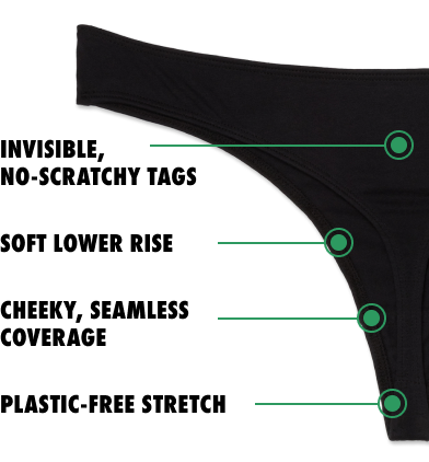 For days when you want a little cheek or a seamless option, our thong is simple and smooth. Super soft and non-toxic, our thongs feature a wider, comfy waist for elevated everyday comfort.